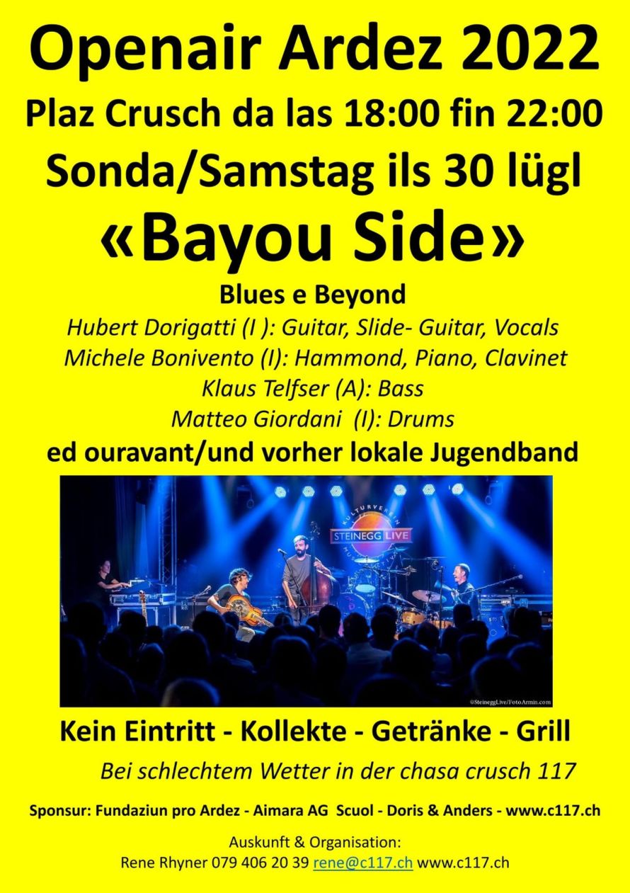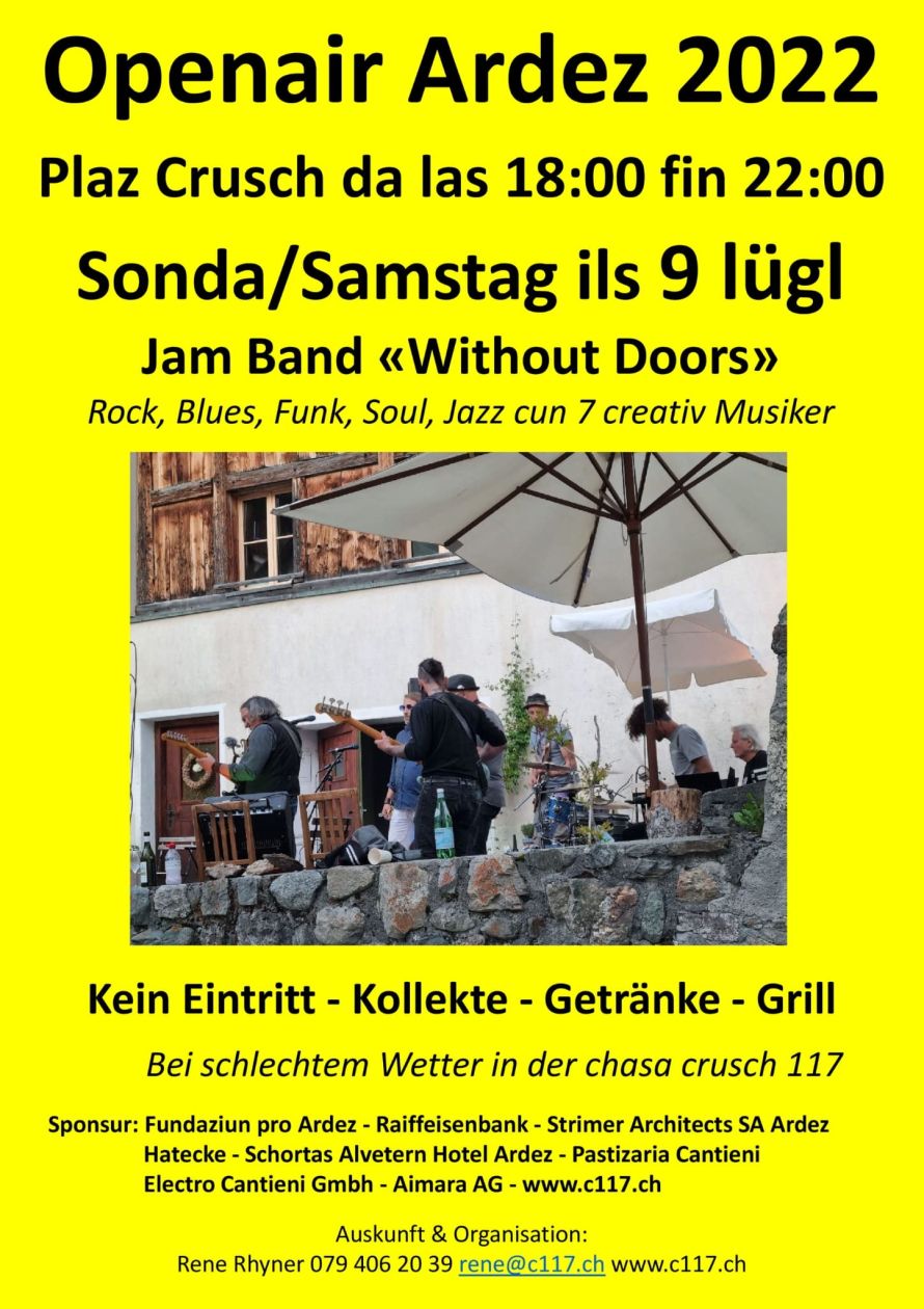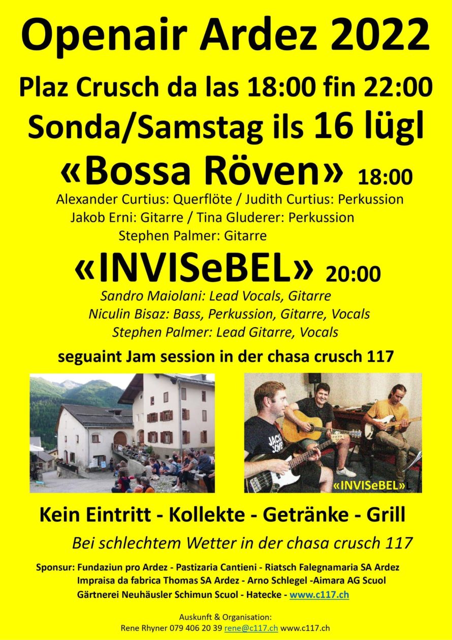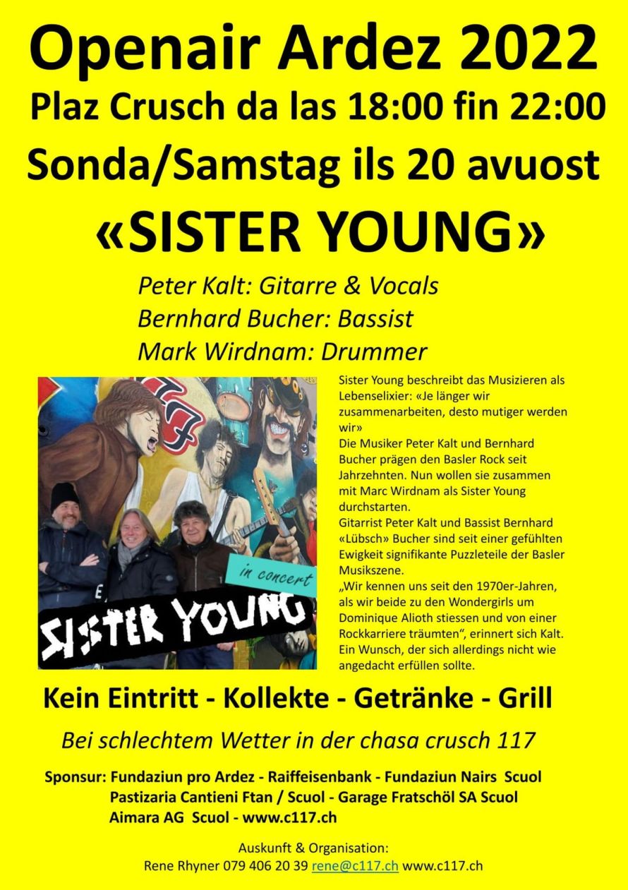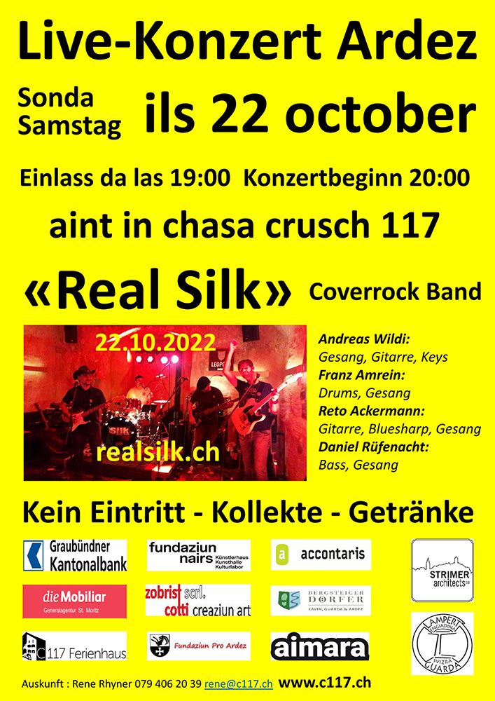 Zum ersten Mal haben wir die grosse Ehre die Cover Band „Real Silk“ bei uns zu haben. Um 19 Uhr öffnet das chasa crusch 117 in Ardez für Sie die Türen, um 20 Uhr ist Konzertbeginn.